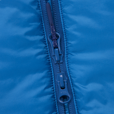 Двухзамковая разъёмная центральная молния с мягкой утеплённой внутренней планкой.