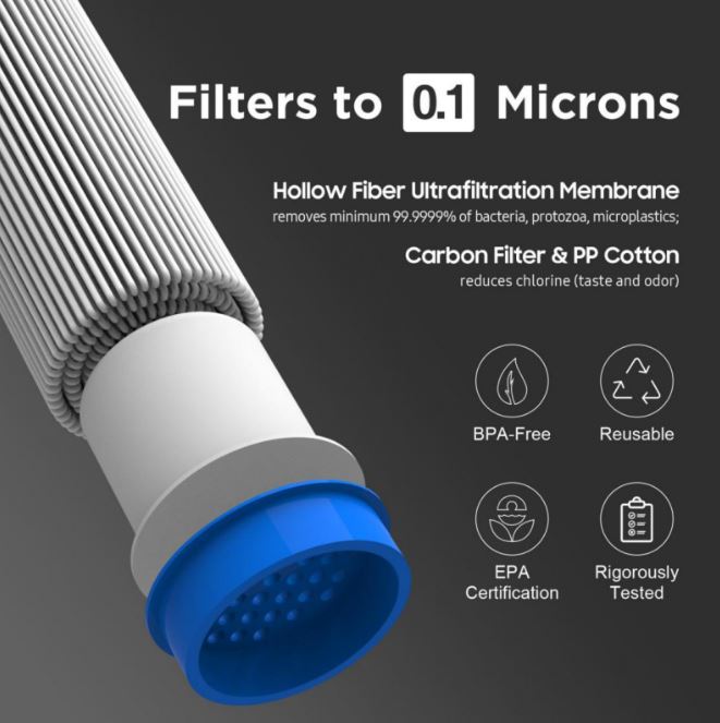 Фильтр осуществляет четырёхступенчатую очистку: Coarse Filter + PP Cotton+ GAC +UF. Использует передовую мембранную технологию ультрафильтрации, которая позволяет удалять до 99,99999 процентов бактерий (например, кишечную палочку, клебсиеллу) и снижает мутность на 99,59630%.