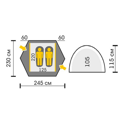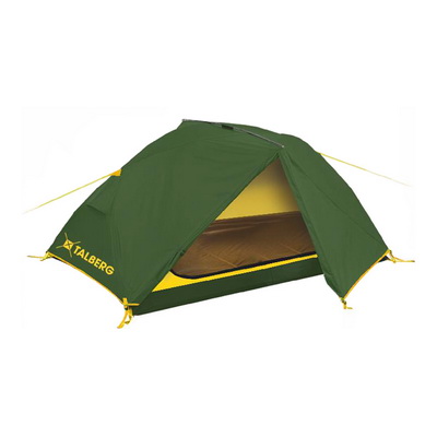 Легкая двухслойная двухместная палатка с дополнительной верхней выносной дугой, увеличивающей объем тамбуров. Туристическая линия Talberg.