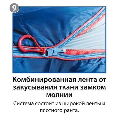 В качестве утеплителя используется IzoFluff Pro. Это новейший утеплитель по своим изоляционным свойствам близкий к натуральному пуху, но лишенный его недостатков (не теряет своих свойств при намокании, не является дружелюбной средой для насекомых и бактерий, спокойно переносит бережную стирку). IzoFluff Pro имеет высокие компрессионные свойства, что вместе с невероятными теплоизоляционными способностями дают возможность создать очень тёплый и компактный спальный мешок. Тонкие полые волокна небольшого размера, расположенные разнонаправленно, прекрасно удерживают тепло, а за счёт силиконовой пропитки при намокании сохраняют до 95% теплоизолирующих свойств.